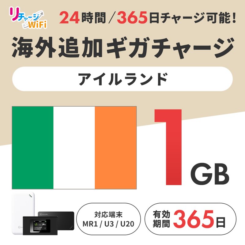 海外追加ギガチャージ_アイルランド_1ギガ【MR1/U3/U20対応】