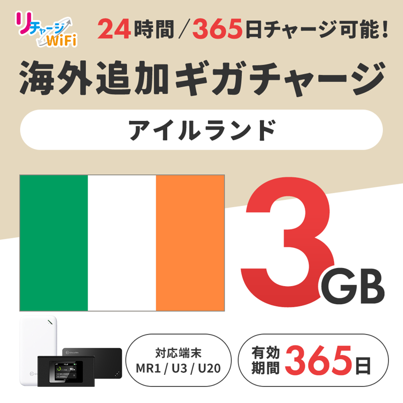 海外追加ギガチャージ_アイルランド_3ギガ【MR1/U3/U20対応】