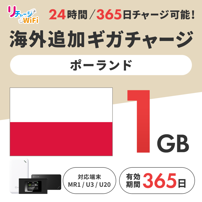 海外追加ギガチャージ_ポーランド_1ギガ【MR1/U3/U20対応】