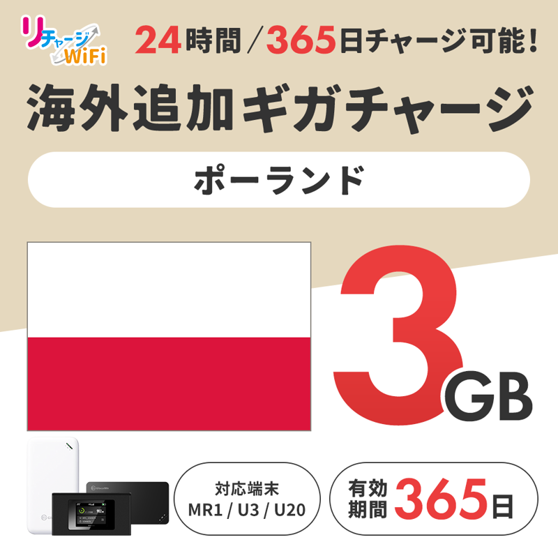 海外追加ギガチャージ_ポーランド_3ギガ【MR1/U3/U20対応】