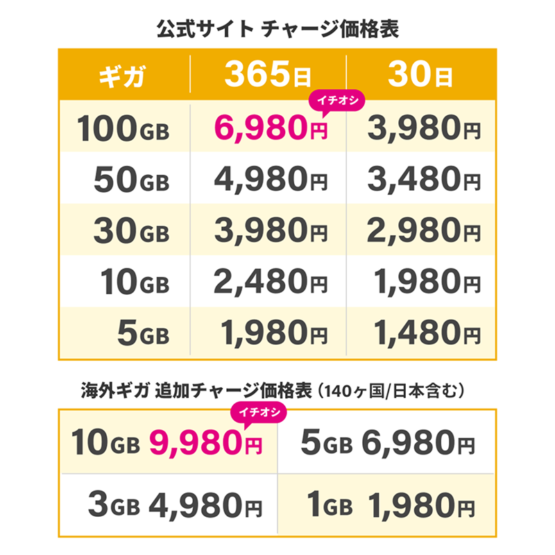 国内、海外追加ギガチャージ機能付き