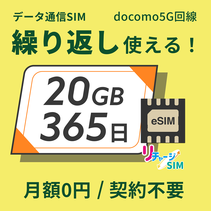 リチャージeSIM 20ギガ/365日