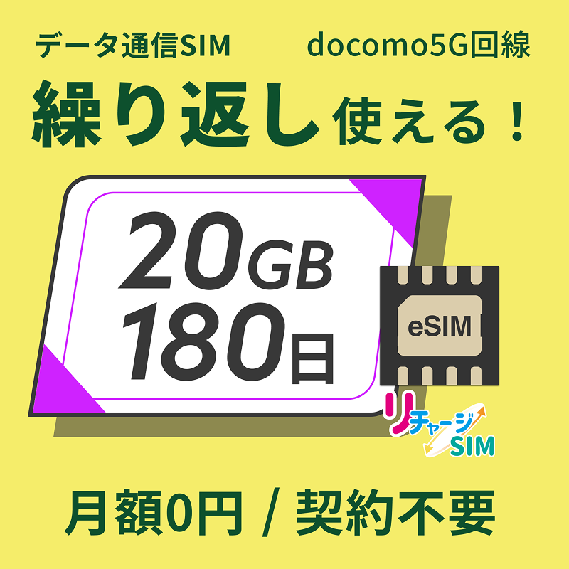 リチャージeSIM 20ギガ/180日