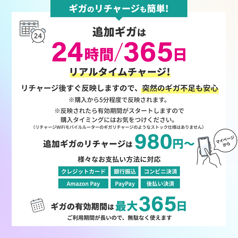 国内追加ギガチャージ機能付き