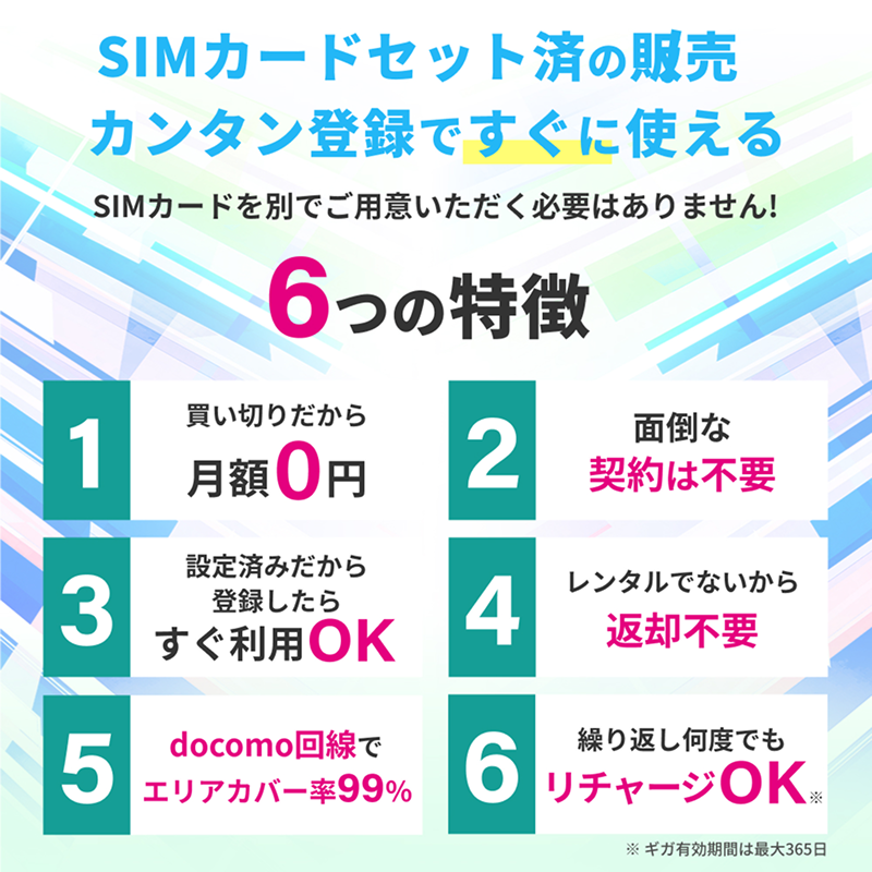 電源ONで即時使える[ギガ有効期間30日]