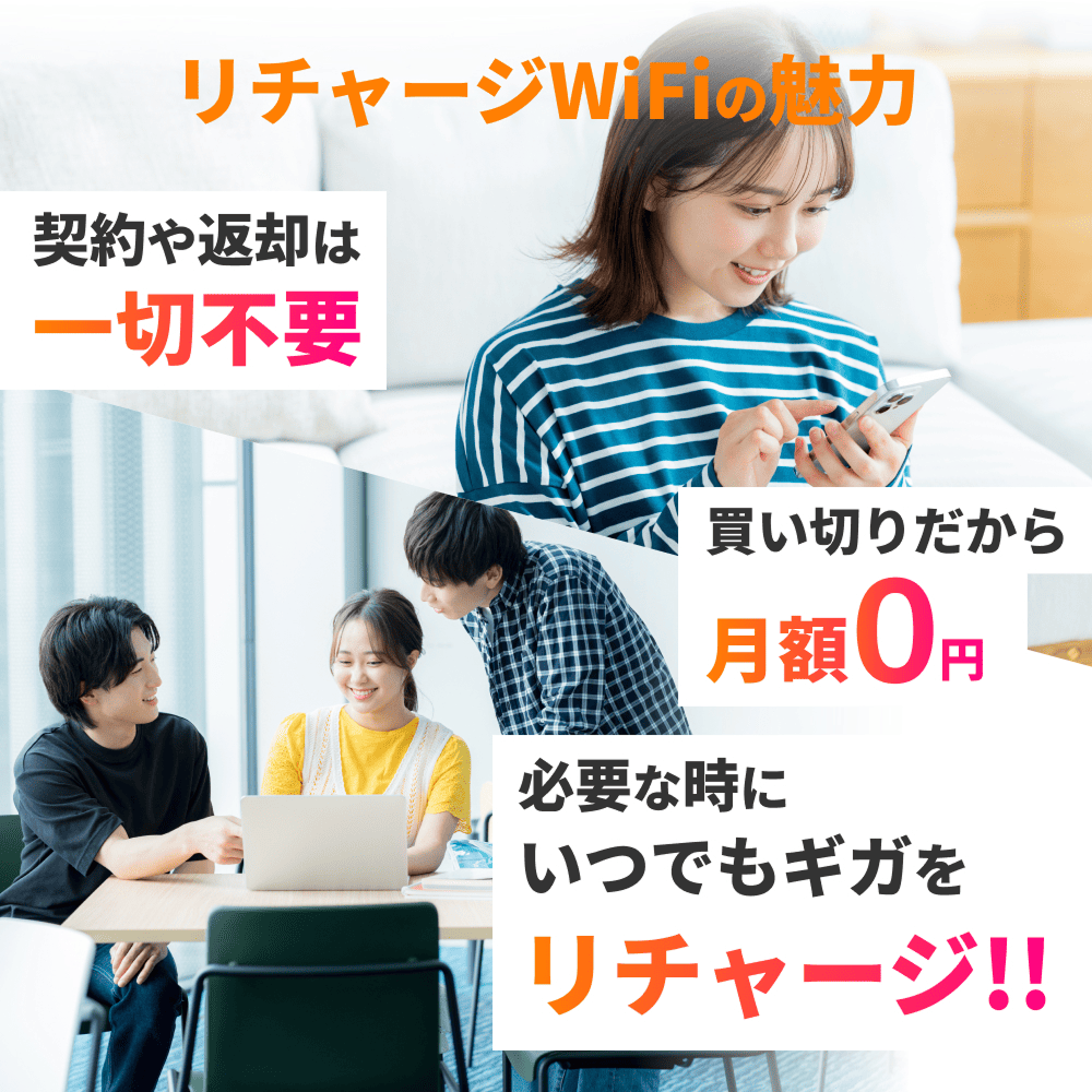 ※「リチャージWiFi」は、株式会社カウスメディアの商標登録商品です。