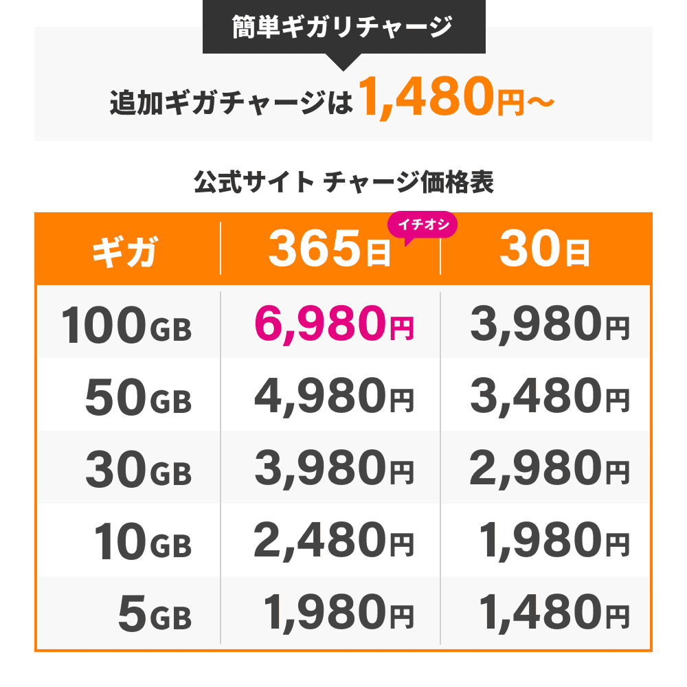 電源ONで即時使える[ギガ有効期間365日]