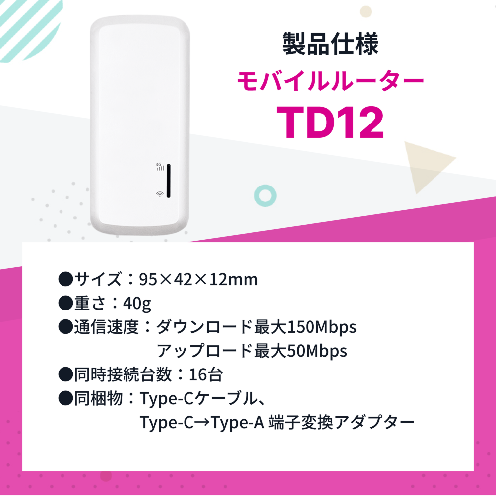 【2026年2月新発売!】【TD12】リチャージWiFi 100ギガ/365日+世界3ギガ付き ONEワールドモデル